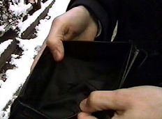Interior structures of a black empty wallet, perhaps one of the most terrifying kinds of abyss to look into, were displayed to the Christmas shoppers on Newbury Street and at the Prudential shopping mall in Boston.